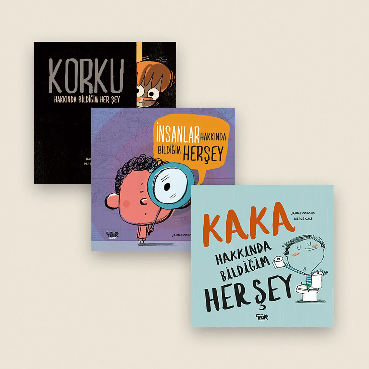 Çocuklara 3 farklı konuyu neşeli bir dille anlatan, sürpriz sorulara ve bir o kadar sürpriz yanıtlara kucak açacak, 11 dile çevrilmiş ve çok satan harika resimli kitaplar. Çocuklar bu kitaplara bayılacak!