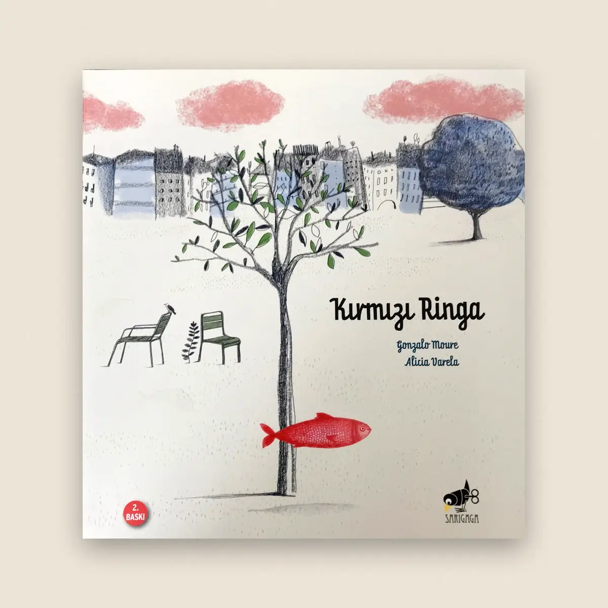 “Kırmızı Ringa” kitabının ilk bölümü bir sessiz kitaptır. Bir parkta bulunan küçük, büyük, dört ayaklı, iki ayaklı birçok karakterin hayatından kısa bir kesit sunulmaktadır. Bu arada şanslı olanlar tepelerinde bir Kırmızı Ringa balığının dolaştığını görürler. Kırmızı Ringa, bir tür tılsım belki de bir anlatıcı gibi karakterlerin hayatında bir dokunuş gerçekleştirir. İkinci bölümde ise yazar parktaki karakterlerin bir kısmının öykülerini bizimle paylaşmıştır. Ancak bunlar, onun gözünden anlatımlardır. Parktaki karakterlerin, bu kitabı eline alan kişi sayısı kadar hatta daha fazla farklı sayıda öyküsü olabilir. Bu yüzden kitabın yazarı ve çizeri (Gonzalo Moure- Alicia Varela) okuyucuya seslenerek şu notu düşmüşler:
