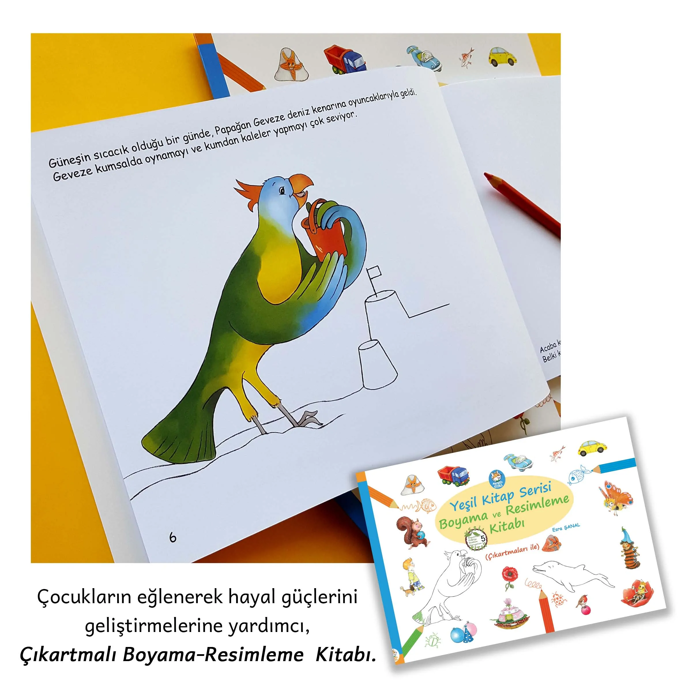 Yeşil Kitap Serisi, Okumalı Boyama ve Resimleme Kitabı; okul öncesi ve okumaya yeni başlayan çocukların, hem eğlenip hem de yaratıcılıklarını geliştirmeleri için özel olarak hazırlandı.
